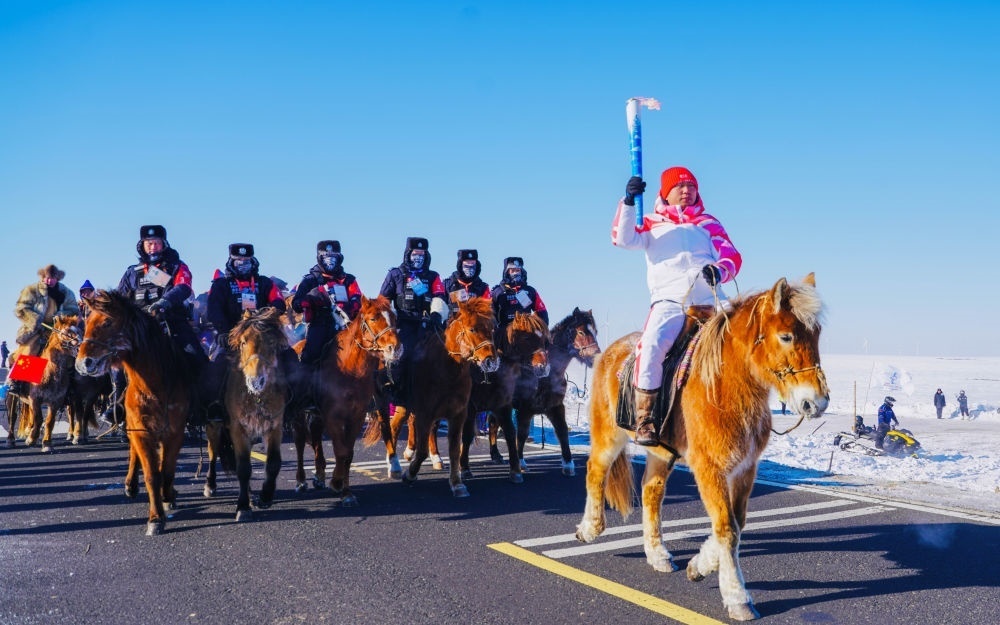 2024年2月3日,第十四屆全國冬季運動會火炬?zhèn)鬟f活動在內(nèi)蒙古自治區(qū)呼倫貝爾市進行,這是“十四冬”開幕前的最后一次火炬?zhèn)鬟f。新華社發(fā)(西日呼攝)