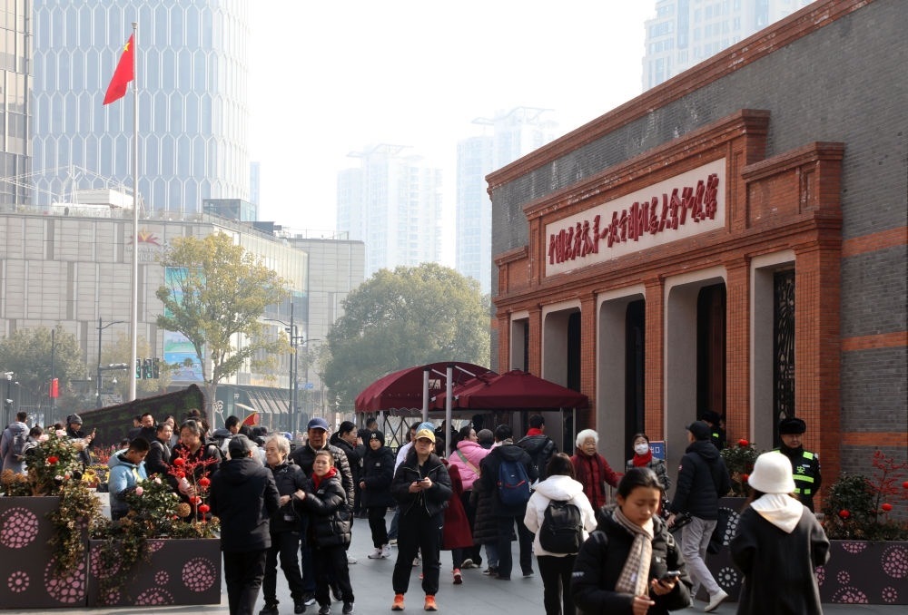 2024年2月10日,位于上海的中共一大紀念館舉辦賀新春活動,紀念館前游人眾多。新華社發(fā)