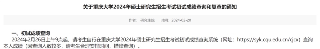 重慶大學(xué)考研初試成績
