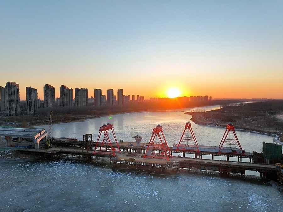 1月15日拍攝的建設(shè)中的廠(chǎng)通路潮白河大橋(無(wú)人機(jī)照片)。新華社記者 邢廣利 攝