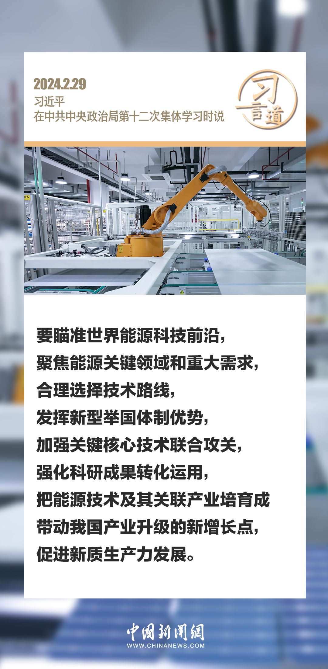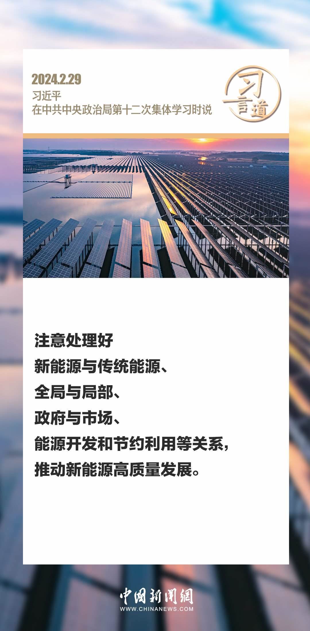 中共中央政治局2月29日下午就新能源技術(shù)與我國的能源安全進(jìn)行第十二次集體學(xué)習(xí)。中共中央總書記習(xí)近平在主持學(xué)習(xí)時強調(diào)——