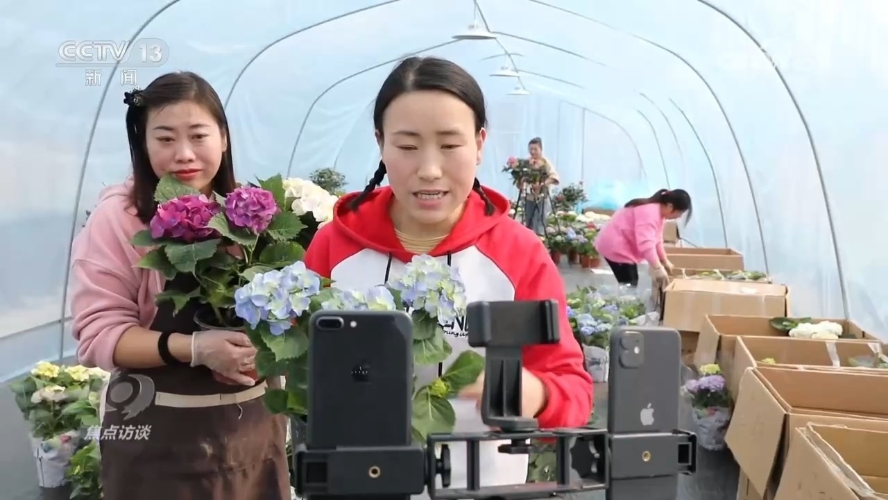江蘇省宿遷市沭陽縣是全國聞名的“花木之鄉(xiāng)”,也是江蘇省面積最大的花木生產(chǎn)縣。近年來,沭陽進一步完善“互聯(lián)網(wǎng)+三農”模式,依托本地花木特色優(yōu)勢和電商先發(fā)優(yōu)勢,持續(xù)壯大花木電商,推動產(chǎn)業(yè)迭代升級。每天晚上,走進沭陽縣新河鎮(zhèn)主播之家的盆景基地,都能看到一片熱鬧的場景。臺上一名拍賣師,臺下五十多名網(wǎng)絡主播同時直播,一邊與粉絲互動,一邊幫忙喊價。在沭陽的各個溫室大棚,也經(jīng)常能看到農戶在帶貨直播,在這里,手機變身為“新農具”、直播變成了“新農活”。
