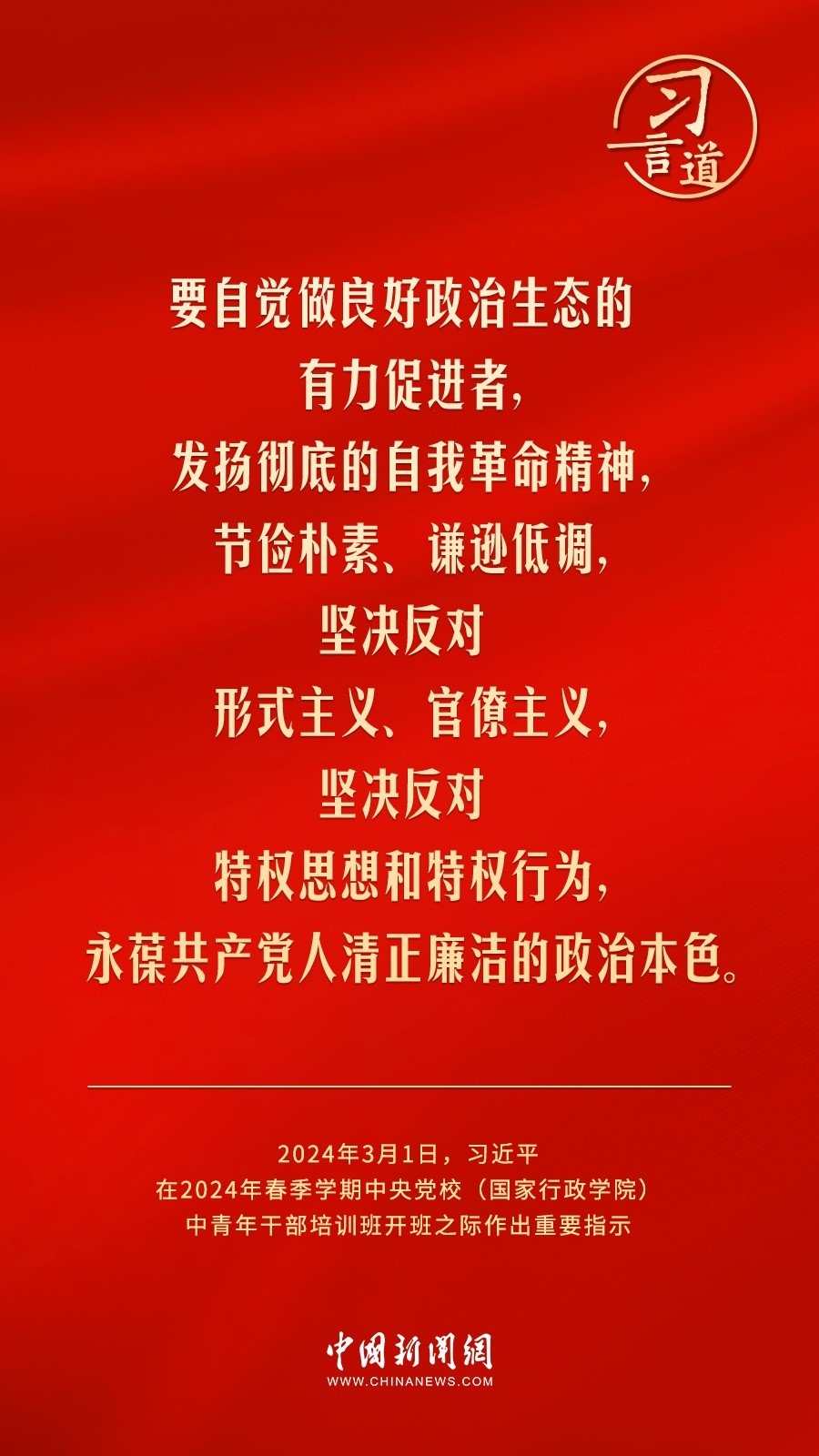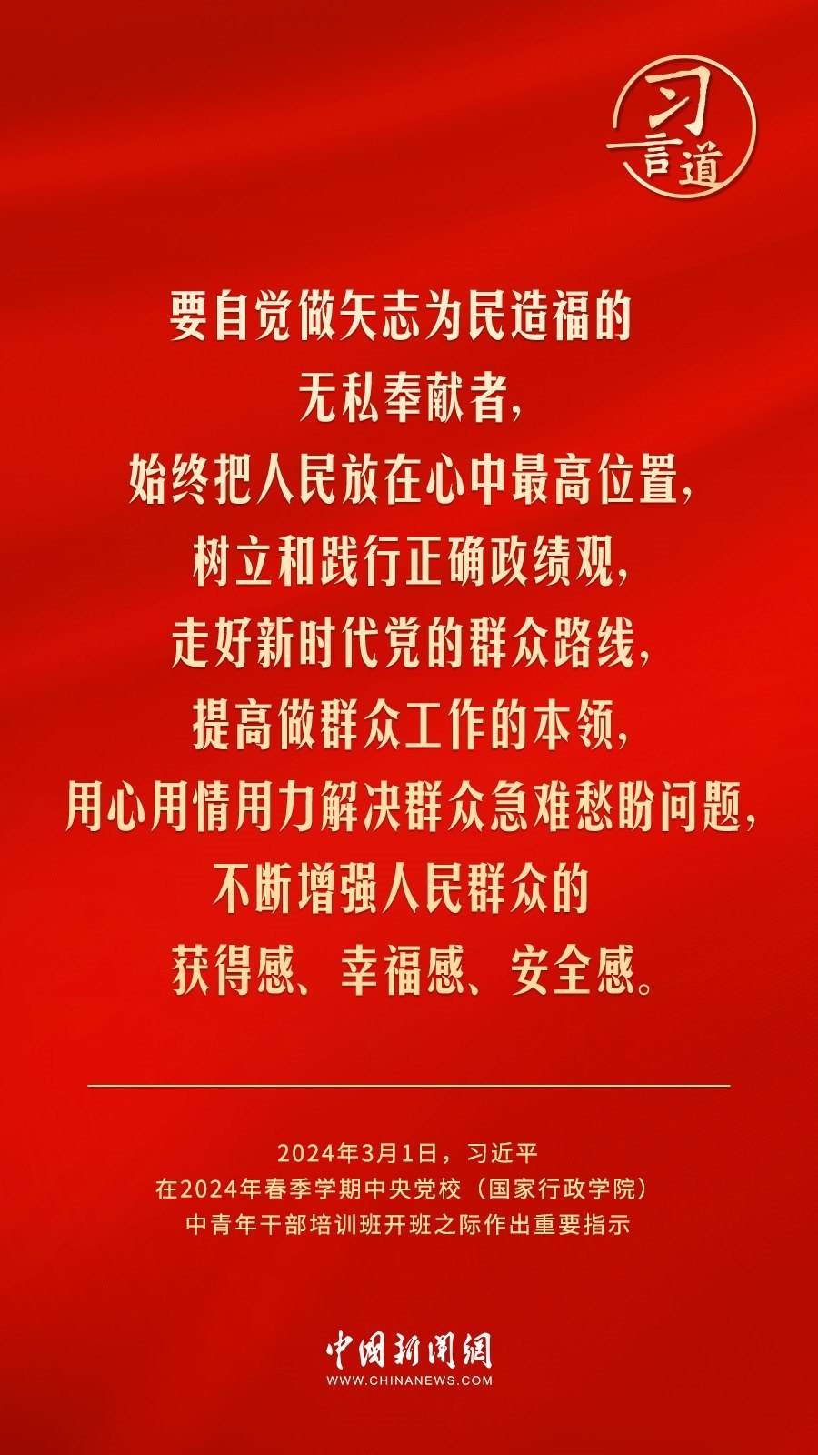 2024年春季學期中央黨校(國家行政學院)中青年干部培訓班3月1日上午在中央黨校開班。中共中央總書記、國家主席、中央軍委主席習近平作出重要指示,他強調——