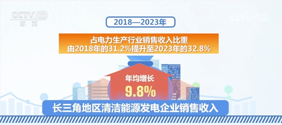 在綠色轉(zhuǎn)型方面,2018—2023年,長(zhǎng)三角地區(qū)清潔能源發(fā)電企業(yè)銷售收入年均增長(zhǎng)9.8%,占電力生產(chǎn)行業(yè)銷售收入比重由2018年的31.2%提升至2023年的32.8%,能源結(jié)構(gòu)“綠色化”成效顯著。