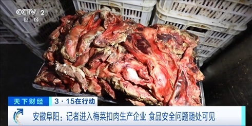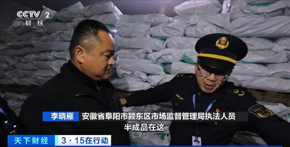 總臺央視記者 李雪峰:我所在位置是安徽阜陽潁東區(qū)。我身后就是被“3·15”晚會曝光的安徽廚先生食品有限公司,現(xiàn)場已經(jīng)有大批的執(zhí)法人員抵達了這里,對這家企業(yè)進行查處。