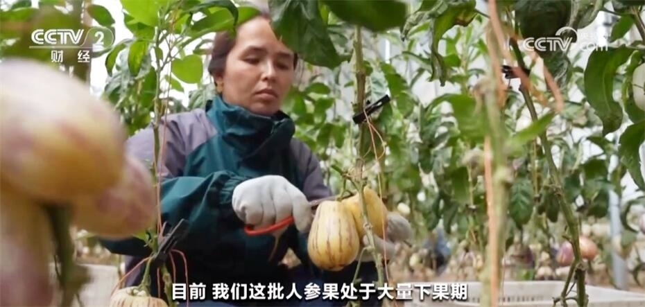 和田縣萬(wàn)畝設(shè)施農(nóng)業(yè)種植基地技術(shù)員施坤年稱(chēng):“每畝的經(jīng)濟(jì)效益在8萬(wàn)元到10萬(wàn)元。目前,我們這批人參果處于大量下果期,可持續(xù)到6月份?!?/p>