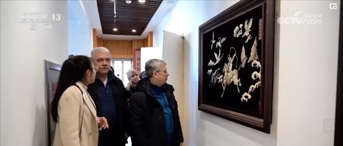 在同江,非物質文化遺產魚皮手工藝品也受到俄羅斯游客的喜愛。赫哲族用魚皮制作的手工藝品精美、大氣、寓意美好,展現了中國少數民族的獨特文化魅力。游客斯維特拉娜當場選購了一幅魚皮畫,準備帶回俄羅斯。