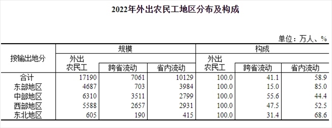 外出務(wù)工人員(農(nóng)民工)是我國(guó)流動(dòng)人口的主體之一。國(guó)家統(tǒng)計(jì)局發(fā)布的《2022年農(nóng)民工監(jiān)測(cè)調(diào)查報(bào)告》顯示,2022年全國(guó)農(nóng)民工總量2.96億人,外出農(nóng)民工1.72億人,其中跨省流動(dòng)7061萬(wàn)人。