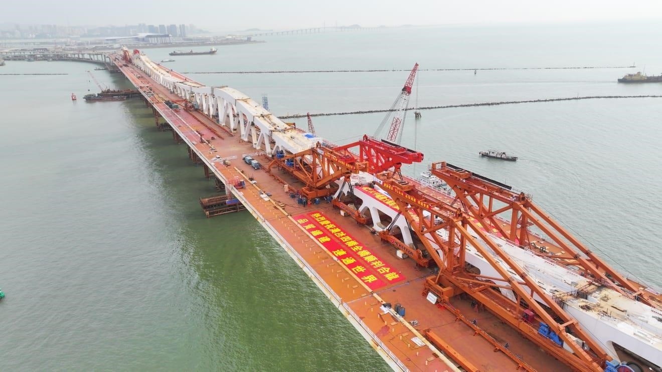 澳氹第四條跨海大橋連接澳門(mén)新城填海A區(qū)、填海E區(qū)以及港珠澳大橋人工島口岸區(qū),是構(gòu)建澳門(mén)城市交通體系的關(guān)鍵節(jié)點(diǎn)。該大橋于3月12日順利實(shí)現(xiàn)全橋合龍,由主體結(jié)構(gòu)工程全面邁入橋梁附屬結(jié)構(gòu)工程。(總臺(tái)記者 ?劉冰清)