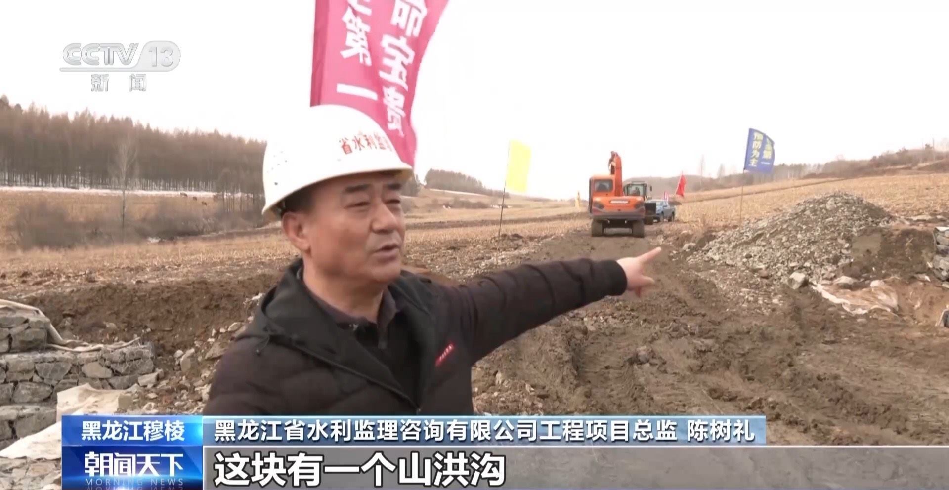 黑龍江省水利監(jiān)理咨詢有限公司工程項目總監(jiān) 陳樹禮:這塊有一個山洪溝,水土流失非常嚴(yán)重,通過項目把這個(地方)用石籠進(jìn)行護(hù)砌,保證土地面積不受沖刷。