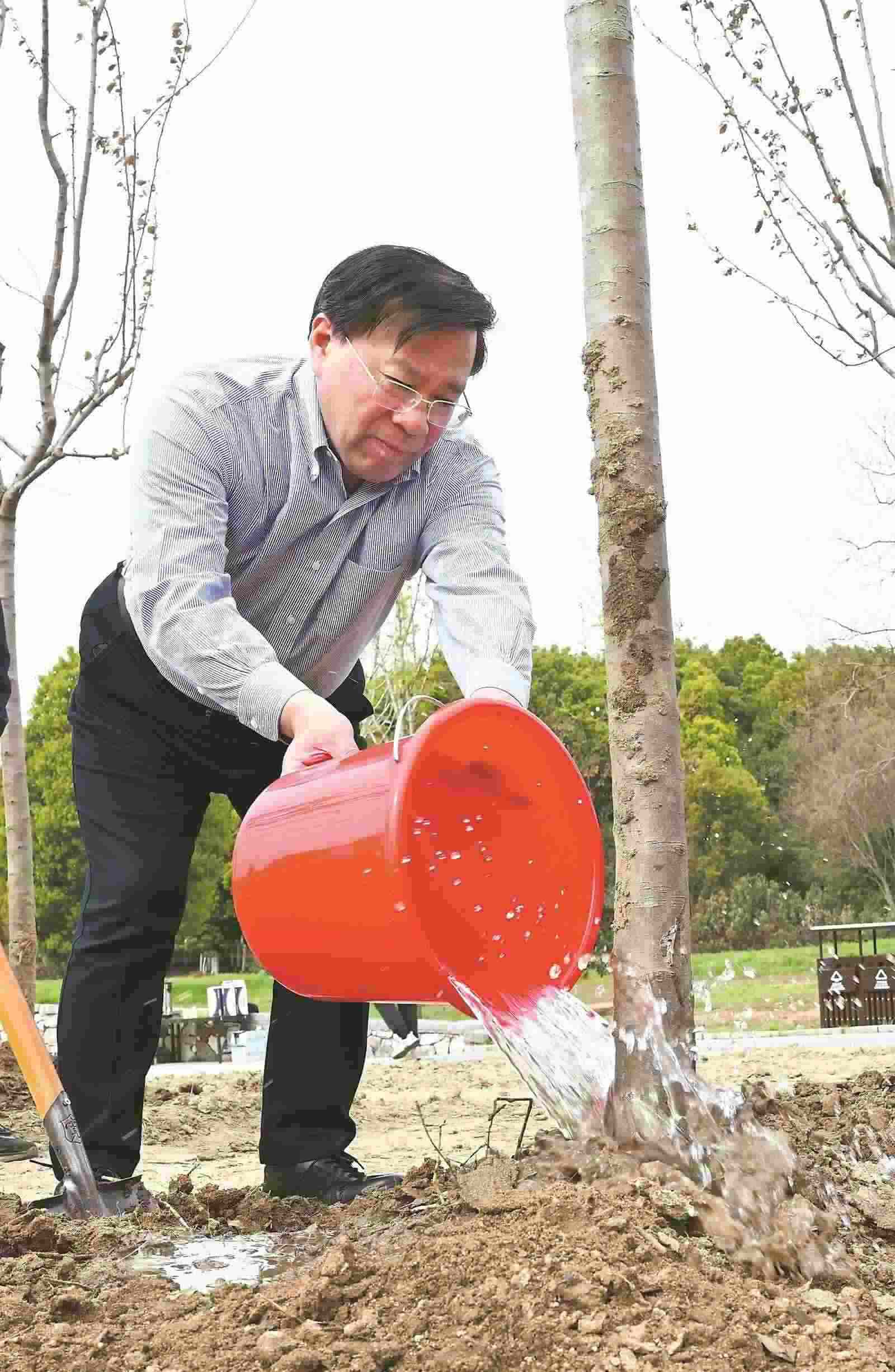 隨后,韓俊等安徽省領(lǐng)導(dǎo)拿起鐵鍬走向植樹地點(diǎn),同現(xiàn)場的干部群眾一起,將一棵棵樹苗植入樹坑。大家揮鍬鏟土、培土圍堰、提水澆灌,經(jīng)過一番忙碌,一排排新栽下的廣玉蘭、桂花、紫薇、海棠等樹種,在和煦的春風(fēng)中昂然挺立,孕育著勃勃生機(jī),煥發(fā)出綠色希望。植樹過程中,韓俊對植樹造林工作提出明確要求。他說,植樹造林功在當(dāng)代、利在千秋。要扎實(shí)開展全民義務(wù)植樹,合理優(yōu)化國土綠化格局,持續(xù)提高造林綠化質(zhì)量,鞏固和增強(qiáng)生態(tài)系統(tǒng)碳匯能力,不斷提升生態(tài)系統(tǒng)多樣性、穩(wěn)定性、持續(xù)性,切實(shí)把好山好水保護(hù)好。各級領(lǐng)導(dǎo)干部要帶頭抓好國土綠化和生態(tài)文明建設(shè)各項(xiàng)工作,大力營造愛綠、植綠、護(hù)綠的文明風(fēng)尚,帶動更多干部群眾爭做生態(tài)文明建設(shè)的實(shí)踐者、推動者,共同種出屬于大家的綠水青山和金山銀山,繪出人與自然和諧共生的美麗安徽新畫卷。