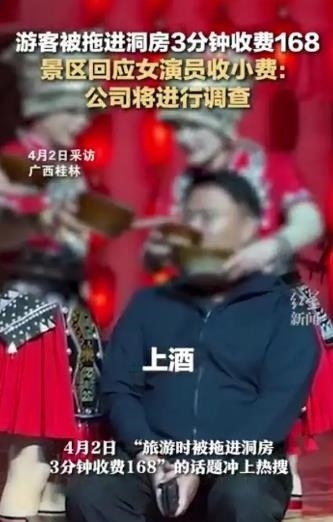 ·游客被拖進洞房3分鐘收費168元,景區(qū)回應(yīng):系女演員收小費。廣西陽朔文旅部門介入調(diào)查。