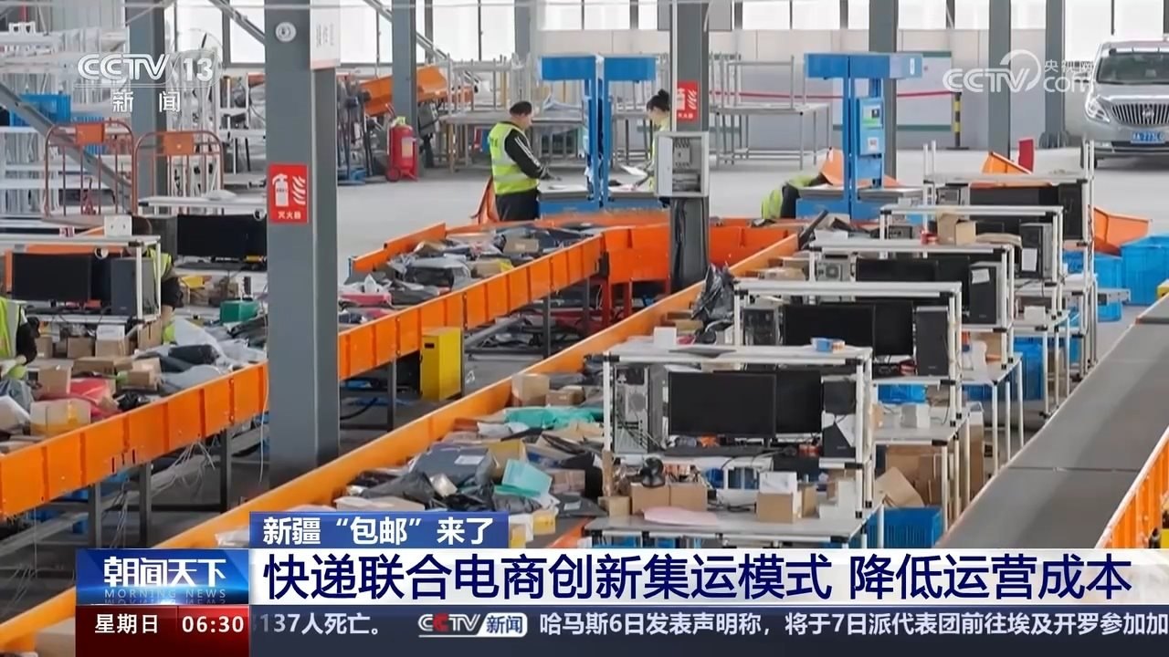 記者來到浙江杭州郵政的一處倉庫,發(fā)現(xiàn)不少郵件上面都貼有“特惠集運(yùn)”的標(biāo)識。工作人員介紹,這是全國首個國內(nèi)郵政集拼倉,全國各大電商平臺和快遞公司的郵件可以統(tǒng)一發(fā)往杭州后經(jīng)由這里統(tǒng)一裝車直達(dá)新疆,減少了以往到蘭州等地經(jīng)轉(zhuǎn)后再次裝卸、運(yùn)輸?shù)攘鞒獭?/p>