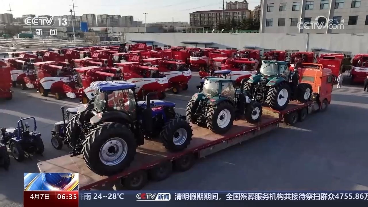 山東濰坊是我國(guó)重要的農(nóng)機(jī)產(chǎn)業(yè)基地,記者在當(dāng)?shù)匾患肄r(nóng)機(jī)龍頭生產(chǎn)企業(yè)看到,一臺(tái)臺(tái)智能化、大馬力農(nóng)機(jī)具,正在裝車(chē)轉(zhuǎn)運(yùn)發(fā)往全國(guó)各地。