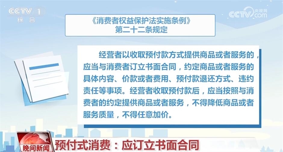 《消費者權(quán)益保護法實施條例》第二十二條規(guī)定,經(jīng)營者以收取預付款方式提供商品或者服務(wù)的,應(yīng)當與消費者訂立書面合同,約定商品或者服務(wù)的具體內(nèi)容、價款或者費用、預付款退還方式、違約責任等事項。經(jīng)營者收取預付款后,應(yīng)當按照與消費者的約定,提供商品或者服務(wù),不得降低商品或者服務(wù)質(zhì)量,不得任意加價。