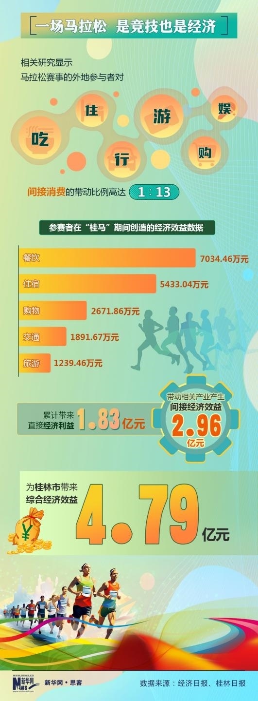 當前,越來越多的城市通過舉辦體育賽事,將活動的流量變成了消費的能量和經(jīng)濟的增量。相關(guān)研究顯示,馬拉松賽事的外地參與者對吃、住、行、游、購、娛等間接消費的帶動比例高達1∶13。