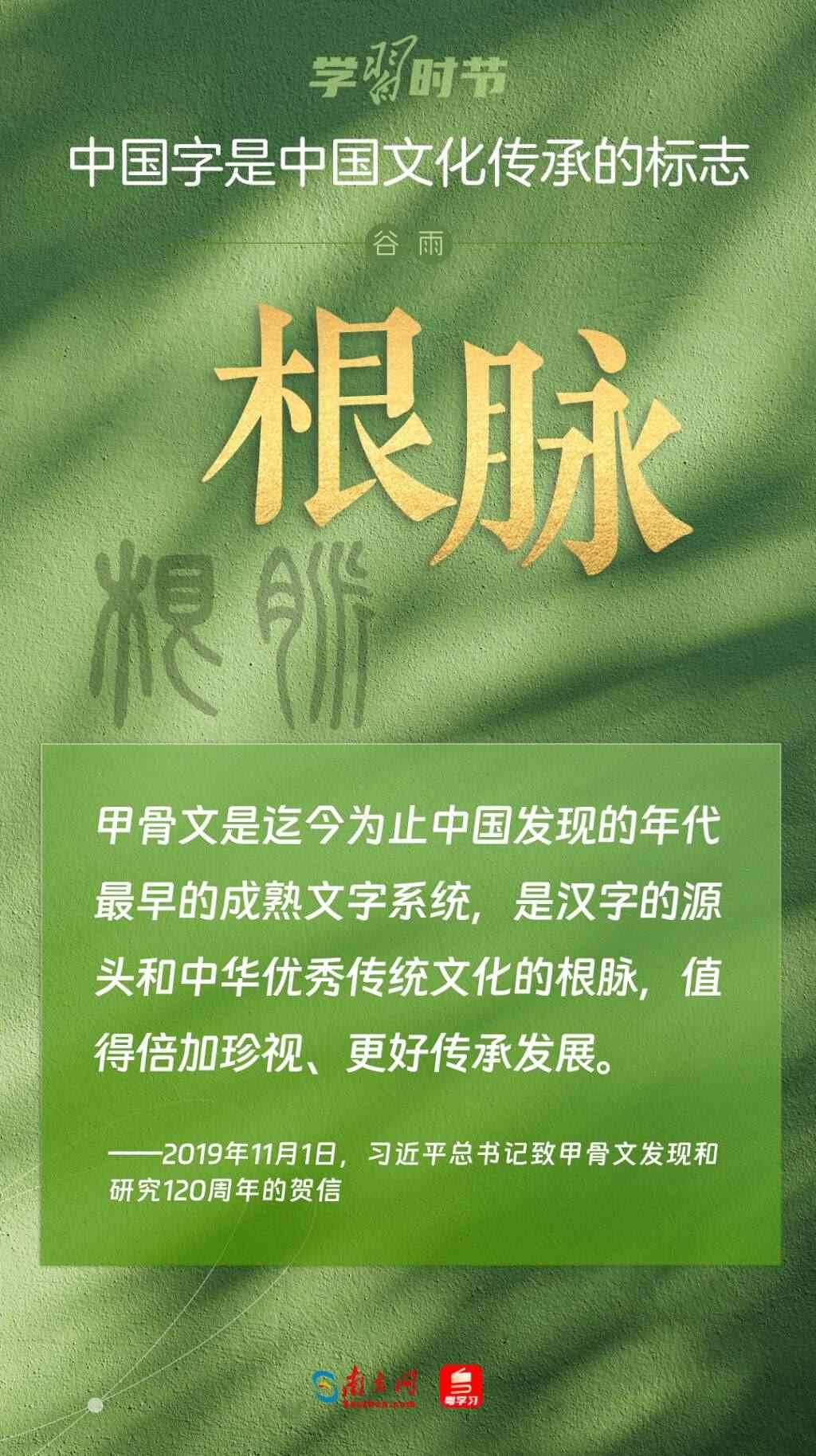谷雨將至,讓我們一起學(xué)習(xí)習(xí)近平總書(shū)記談漢字、談文化傳承的經(jīng)典話語(yǔ),感悟和領(lǐng)略中華優(yōu)秀傳統(tǒng)文化的魅力。