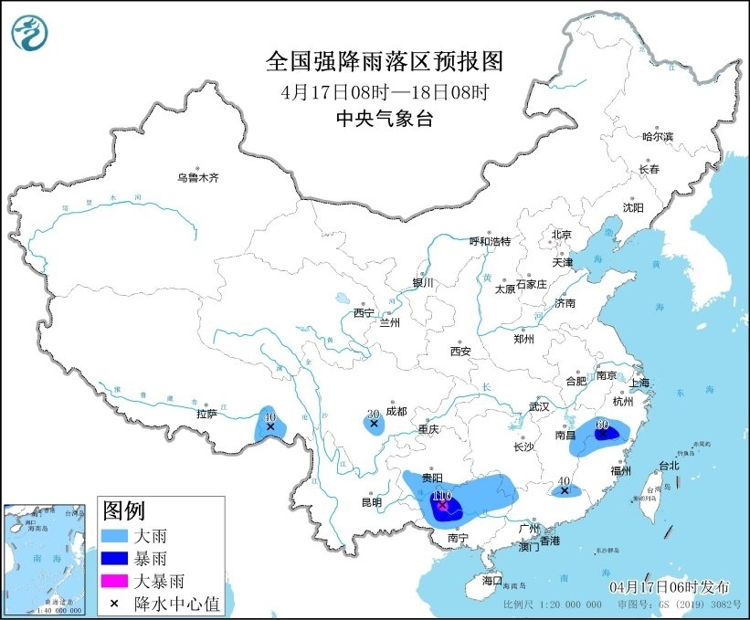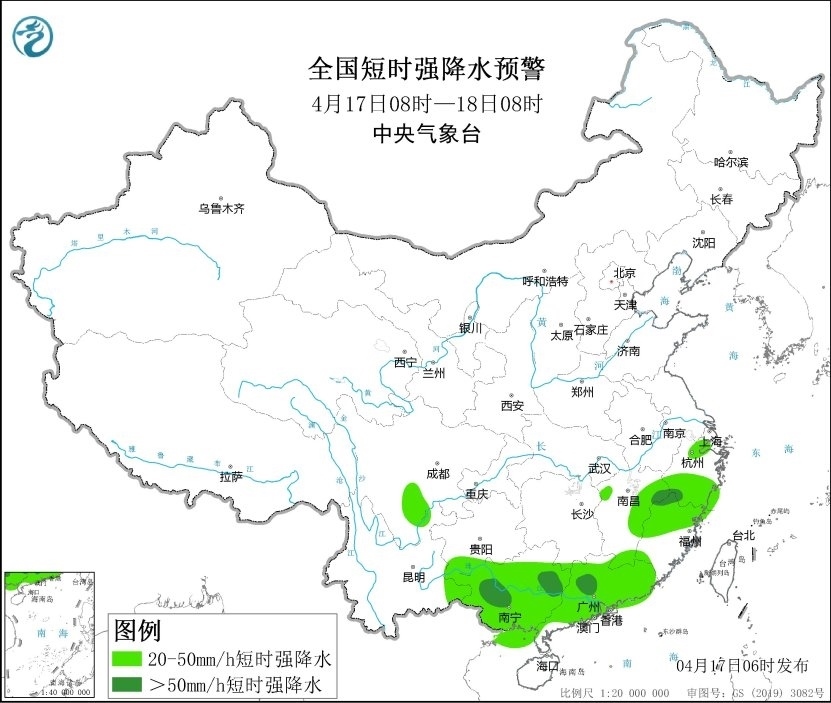 預計4月17日08時至18日08時,江西東北部、浙江南部、福建北部、廣西東部和西南部、廣東中東部和西北部等地的部分地區(qū)將有8-10級雷暴大風或冰雹天氣,局地風力可達11級以上;江西中北部和南部、浙江、福建、四川南部、貴州西南部、云南東南部、廣西、廣東等地的部分地區(qū)將有短時強降水天氣,最大小時雨量30-60毫米,局地可達70毫米以上。