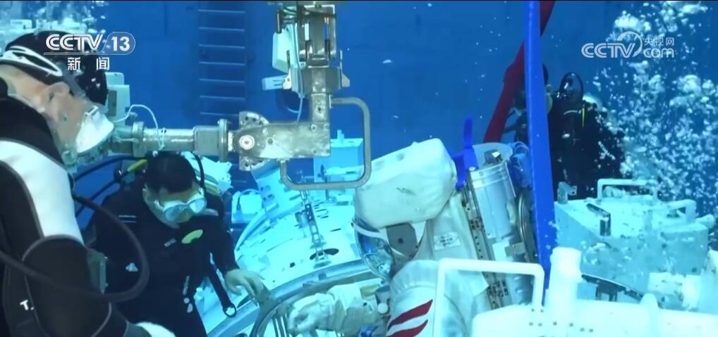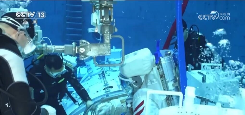 李聰說:“水下訓(xùn)練時(shí),看不見腳在哪兒,只能通過反光鏡反著看,又不是很方便,基本上就是盲操作。我跟03訓(xùn)練下來感覺不是特別好,然后01下來會(huì)給我們講一講天上是什么感覺,水槽里有什么感覺,天上和水槽有不同的感覺,反復(fù)地跟我們倆去說這些經(jīng)驗(yàn)。訓(xùn)練的后期,我跟03基本上上腳限位器,一次性直接就上去了?!?/p>