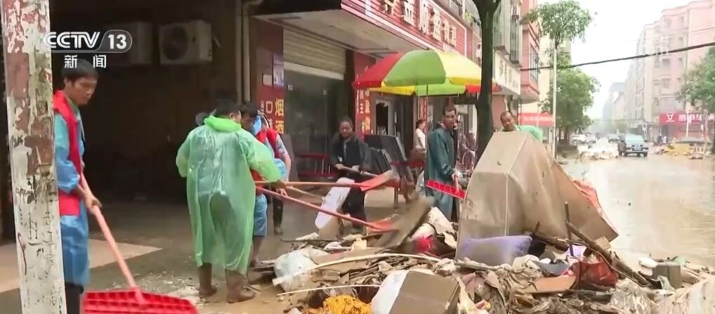 在清遠英德市浛洸鎮(zhèn),被浸了兩天多的鎮(zhèn)區(qū)已經(jīng)全部退水,當?shù)亟M織黨員干部投入清淤工作,同時加緊時間進行清洗和消殺。