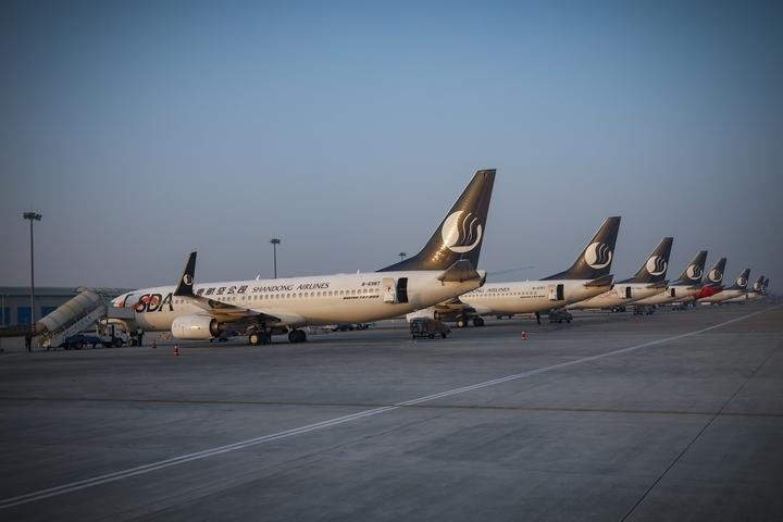 圖為山東航空在機(jī)場(chǎng)停靠的飛機(jī)。(山東航空供圖)