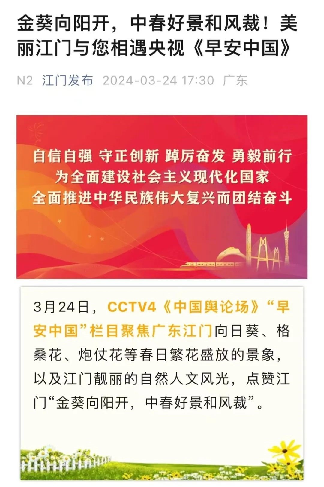 “央視帶你看綠美臺(tái)山,這次關(guān)注的是......”“就在明早7點(diǎn)!央視奉上重慶大足人文美景,向全球觀眾道早安!”“央視聚焦!徐州,有美景,有年味”“金葵向陽開,中春好景和風(fēng)裁!美麗江門與您相遇央視《早安中國(guó)》”……越來越多的地方政府伸出橄欖枝,希望《早安中國(guó)》多“來”當(dāng)?shù)匾挥[好風(fēng)光。
