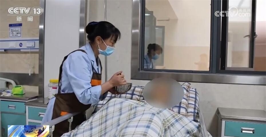 四川省巴中市通江縣大椿養(yǎng)老康復中心養(yǎng)護部副主任蒲玉稱:“在護理的過程當中,我會通過情緒安撫,說一些老年人喜歡的話題,引導老人飲食。”