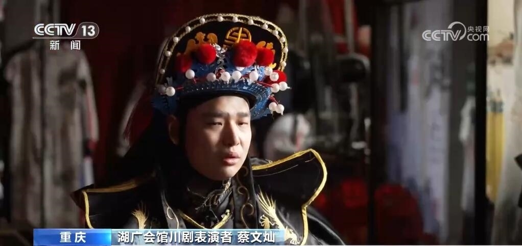 古戲臺(tái)見證了川渝人對(duì)于戲曲的熱情。如今,10多個(gè)平均年齡不到30歲的年輕人每天都會(huì)在這里演出?!?0后”的蔡文燦就是川劇變臉的表演者,他已經(jīng)在這里演了五年。