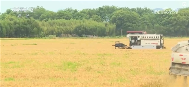 記者在臨海市永豐鎮(zhèn)南岸村的麥田里看到,收割機在麥田里來回穿梭,轉(zhuǎn)眼間,一畝畝小麥便收割完畢。
