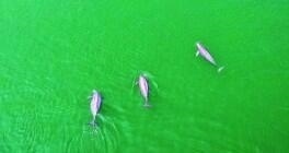 第二天上午,我們將兩頭江豚從故道運(yùn)送到長江干流釋放。經(jīng)過1周的無線電監(jiān)測、聲學(xué)監(jiān)測和無人機(jī)影像觀察,我們確認(rèn)它們?cè)诟闪魃钫?,并與野外江豚相聚。