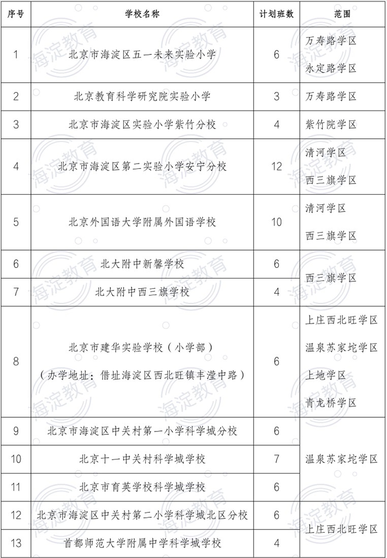 持有海淀區(qū)《學齡人口信息采集表》的適齡兒童且戶口所在地或者實際居住地屬于萬壽路學區(qū)、永定路學區(qū)、羊坊店學區(qū)、八里莊學區(qū)、紫竹院學區(qū)、海淀學區(qū)、中關(guān)村學區(qū)、北太平莊學區(qū)、上地學區(qū)、青龍橋?qū)W區(qū)、清河學區(qū)、西三旗學區(qū)、上莊西北旺學區(qū)、溫泉蘇家坨學區(qū)之一,對應范圍內(nèi)的兒童僅可填報一所公辦中學舉辦小學部及新建小學。