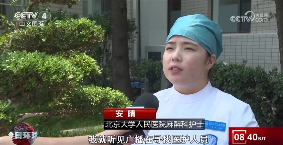 北京大學(xué)人民醫(yī)院麻醉科護(hù)士安晴稱:“進(jìn)了地鐵閘機(jī)門之后,我就聽見廣播在尋找醫(yī)護(hù)人員 ,我就趕緊從樓梯走了下去。當(dāng)時(shí)患者已經(jīng)沒(méi)有反應(yīng)了,已經(jīng)呼之不應(yīng)了,我就立馬上前查看了一下她的瞳孔,當(dāng)時(shí)瞳孔已經(jīng)散大了,然后摸了一下頸動(dòng)脈的搏動(dòng),也是消失的,我就判定她為心臟驟停,然后緊急對(duì)她進(jìn)行了胸外按壓?!?/p>