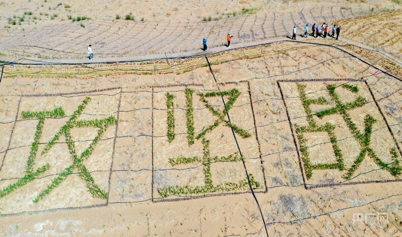 經(jīng)過幾代人艱苦卓絕地斬“黃龍”、斗風沙的大會戰(zhàn),曾被稱為“死亡之?!钡膸觳计渖衬缃衤肪W(wǎng)縱橫交錯,通過設(shè)置沙障、人工造林、飛播造林,沙漠經(jīng)濟煥發(fā)出勃勃生機。