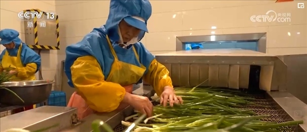 香蔥被運輸?shù)疆數(shù)氐募庸S后,經(jīng)過洗、理、切、分揀裝盤,然后就開始了高科技的“蛻變”之旅。工人先把香蔥放入冷庫冷凍數(shù)小時,然后立即抽真空“升華”干燥,經(jīng)過48小時左右的一系列工序后,一棵香蔥就變成了脫水蔬菜。留學回國創(chuàng)業(yè)的王一盛介紹,與過去使用的熱風干燥技術(shù)相比,這種新技術(shù)不僅讓垛田香蔥最大程度鎖鮮,價格也比過去增加了五六倍。