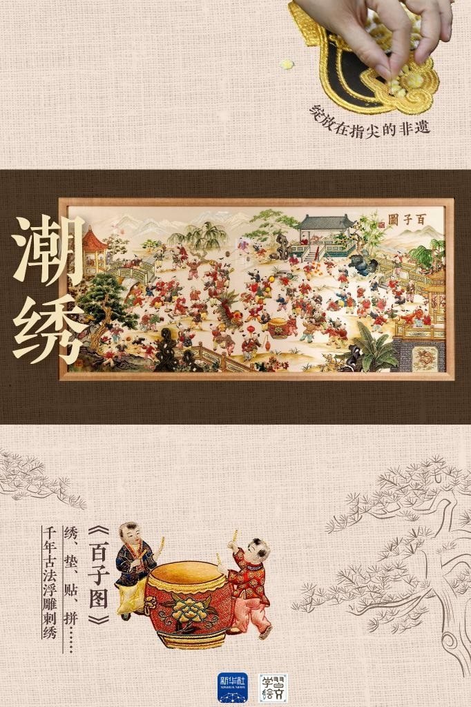 潮繡,屬我國四大名繡中的粵繡門派,最大的特點(diǎn)是立體墊高,以繡藝精美細(xì)致、構(gòu)圖均衡飽滿著稱,色彩亮麗又具立體感。
