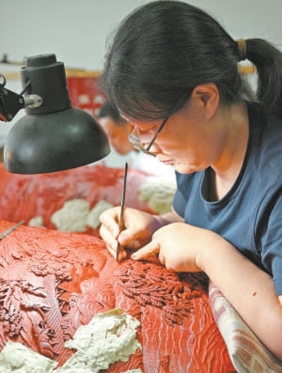 文化傳承揚州漆器技藝傳承人進行雕花。本報記者 雷 聲攝