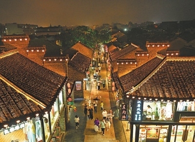 文旅融合市民和游客夜游揚州東關(guān)街。本報記者 雷 聲攝