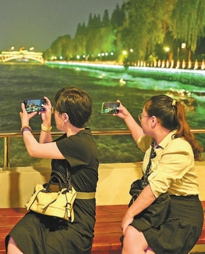 文旅融合乘船游覽的游客在拍攝大運河揚州段沿岸風(fēng)景。本報記者 雷 聲攝