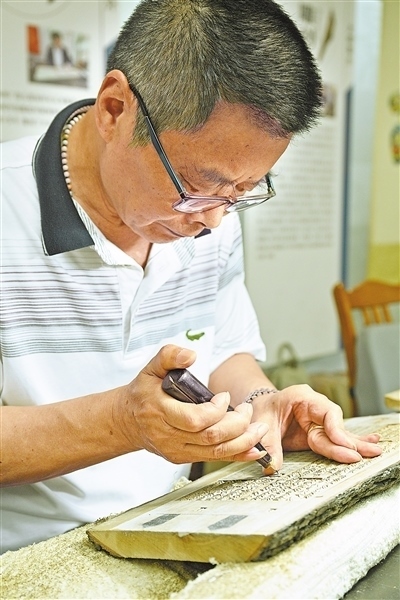 文化傳承揚州雕版印刷技藝傳承人進行雕版。本報記者 雷 聲攝