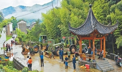 23日下午,雨水依舊連綿不絕,搶通道路、救助群眾的任務也一直在進行,推土機、裝載機、機械化橋等各類工程裝備忙碌作業(yè)。在道路出現(xiàn)二次塌方、三次塌方的情況下,官兵們在確保施工安全的前提下持續(xù)奮戰(zhàn)了數(shù)小時,終于將這條通往大山深處村莊的路搶通。大家顧不上調整,便載著物資前往受災村莊。