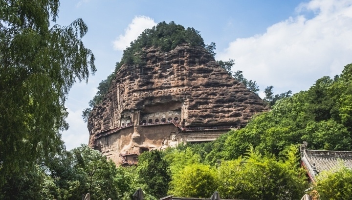 甘肅天水,麥積山石窟迎來眾多游客