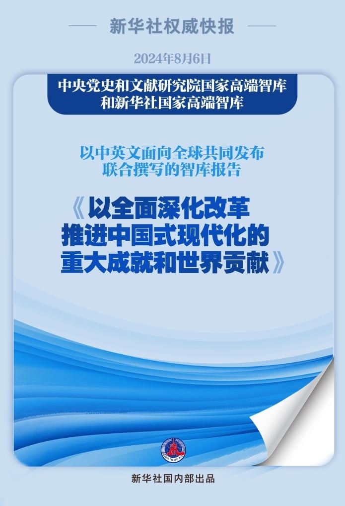 “紅廳論壇:讀懂中國共產(chǎn)黨二十屆三中全會”主題研討會8月6日在中國共產(chǎn)黨歷史展覽館紅色大廳舉行。會上,中央黨史和文獻研究院國家高端智庫和新華社國家高端智庫以中英文面向全球共同發(fā)布聯(lián)合撰寫的智庫報告《以全面深化改革推進中國式現(xiàn)代化的重大成就和世界貢獻》。