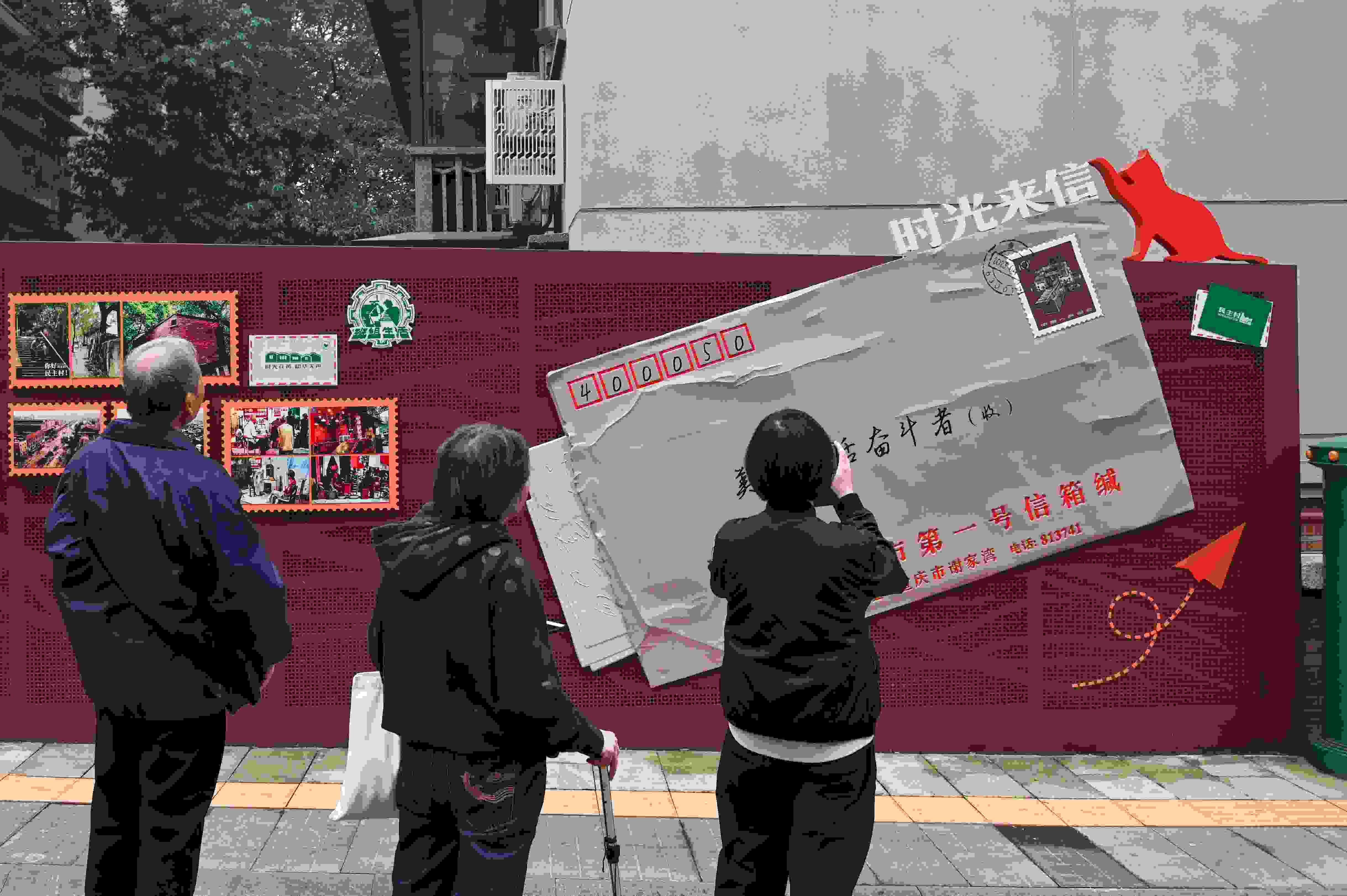 在重慶市九龍坡區(qū)民主村社區(qū),一封寄給“美好生活奮斗者”的巨大信封,幾乎鋪滿一面紅色的墻。市井煙火氣與新潮現(xiàn)代的時尚范兒融合交織,讓這里成為新晉網紅打卡地。