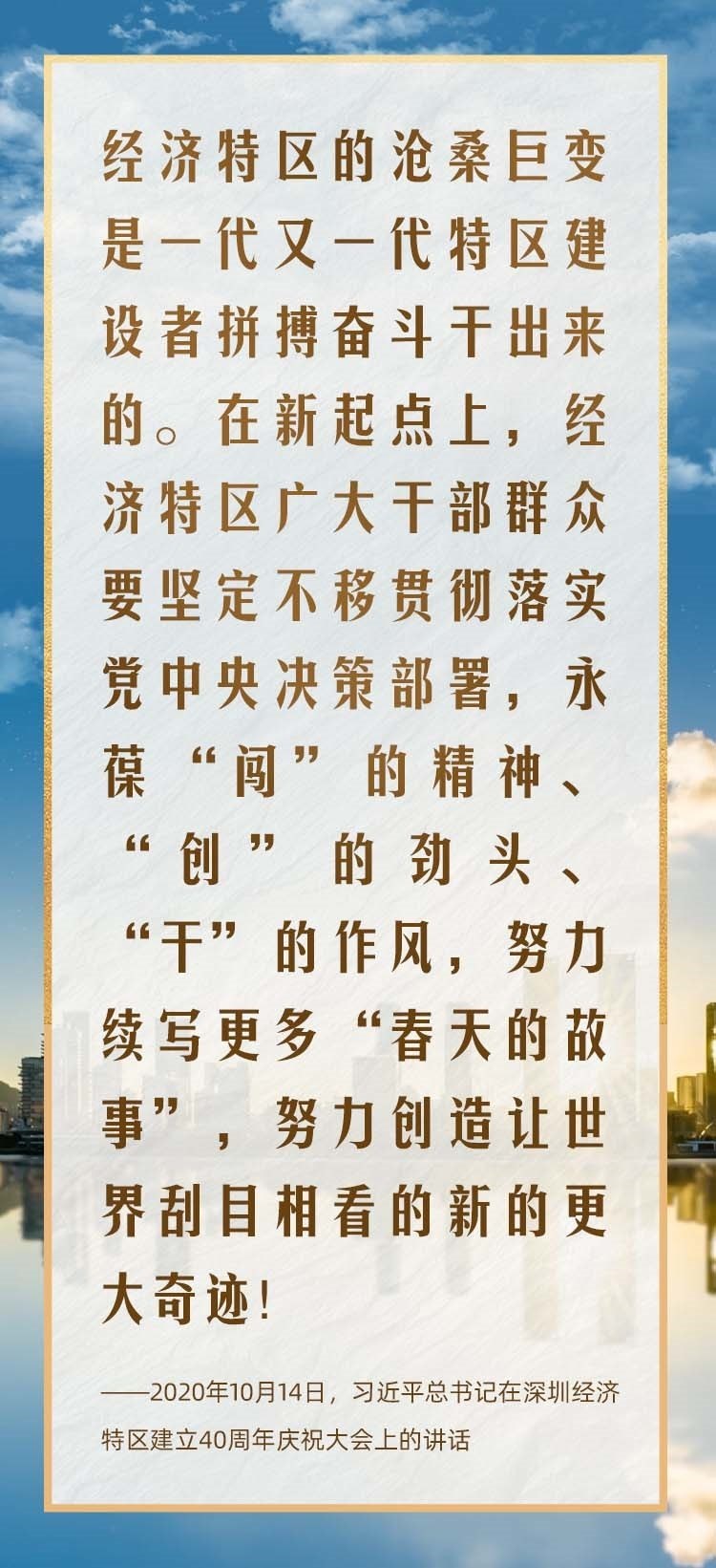 2020年10月,在慶祝深圳經(jīng)濟特區(qū)建立40周年之際,習(xí)近平總書記又一次來到這里,出席慶祝大會,強調(diào)改革不停頓、開放不止步,在更高起點上推進改革開放,推動經(jīng)濟特區(qū)工作開創(chuàng)新局面。