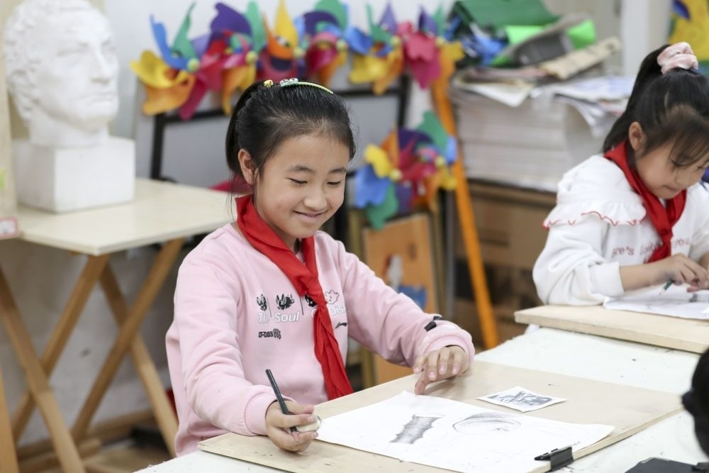 2021年10月27日,學生在黑龍江省哈爾濱市榆樹鎮(zhèn)中心校新鄉(xiāng)小學鄉(xiāng)村學校少年宮參加美術(shù)學習班。近年來,黑龍江省各地以鄉(xiāng)村小學為基礎(chǔ),大力發(fā)展鄉(xiāng)村學校少年宮,開設(shè)德育、文藝、體育、科普、手工等多種課外活動,滿足學生需求,培養(yǎng)孩子們的興趣愛好和特長。
