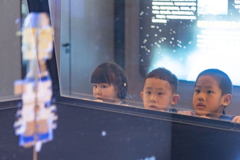 2024年4月24日,小朋友在哈爾濱工業(yè)大學航天館內(nèi)參觀。航天館是哈爾濱工業(yè)大學重要的教學基地,也是向社會公眾開展航天國防教育、弘揚航天精神的重要場所,被授予首批全國科普教育基地、首批國家航天局航天科普教育基地、全國中小學生研學實踐教育基地等。