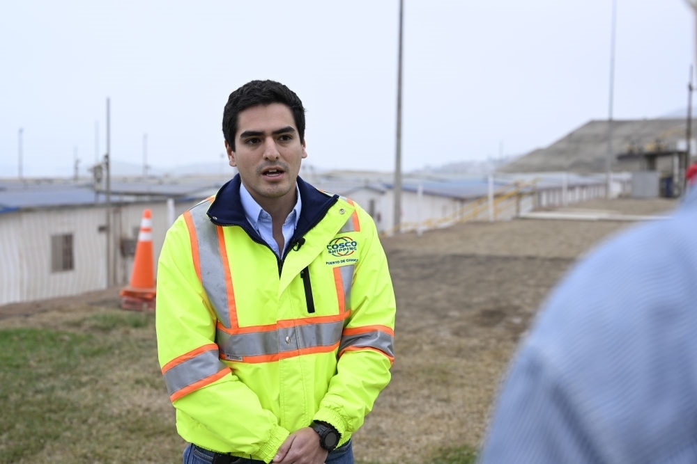 2024年6月21日,秘魯青年丹尼爾·哈雷斯在錢凱港項目現(xiàn)場接受媒體采訪。項目啟動之初,丹尼爾·哈雷斯還是一名剛?cè)肼殘龅膶嵙暽缃?7歲的他已成長為項目工程部合同管理員。隨著錢凱港建設(shè)不斷推進,項目的工作崗位在當?shù)爻蔀槟贻p人就業(yè)的熱門選項。
