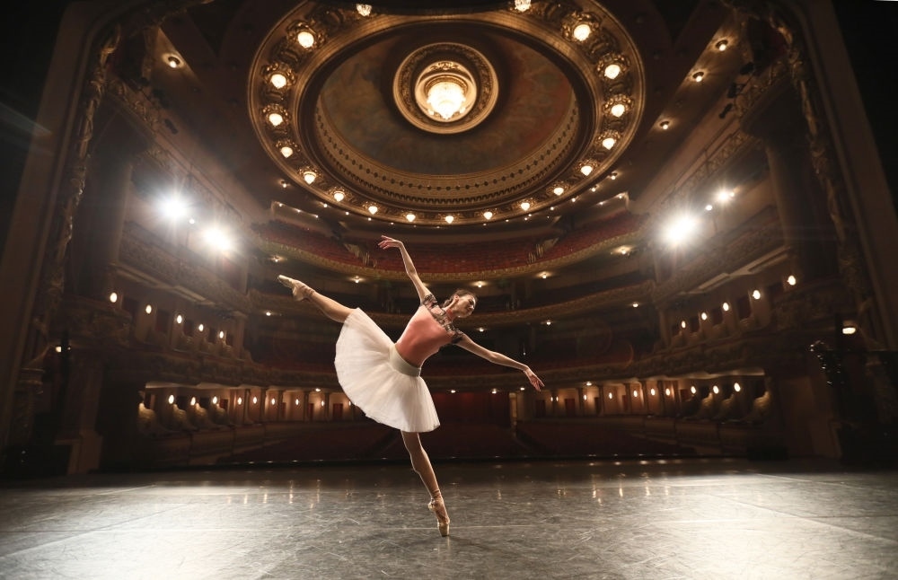 2019年5月24日,中央芭蕾舞團(tuán)演員方夢穎在巴西里約熱內(nèi)盧市政劇院排練。中央芭蕾舞團(tuán)攜《大紅燈籠高高掛》來到巴西,為當(dāng)?shù)孛癖姭I(xiàn)上帶有濃郁中國元素的精彩表演。