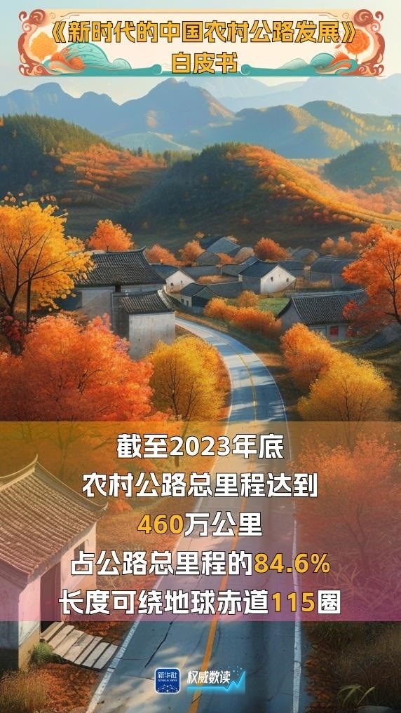國務(wù)院新聞辦公室29日發(fā)布的《新時(shí)代的中國農(nóng)村公路發(fā)展》白皮書顯示,截至2023年底,我國農(nóng)村公路總里程增長到460萬公里,占公路總里程的84.6%,目前已形成了“外通內(nèi)聯(lián)、通村暢鄉(xiāng)、客車到村、安全便捷”的農(nóng)村交通運(yùn)輸網(wǎng)絡(luò),帶動(dòng)農(nóng)村地區(qū)整體面貌發(fā)生了巨大變化。