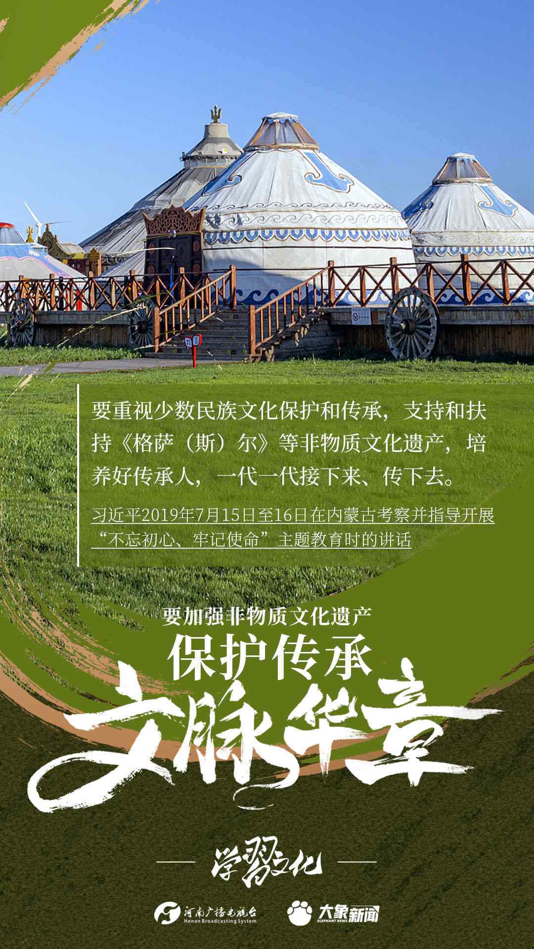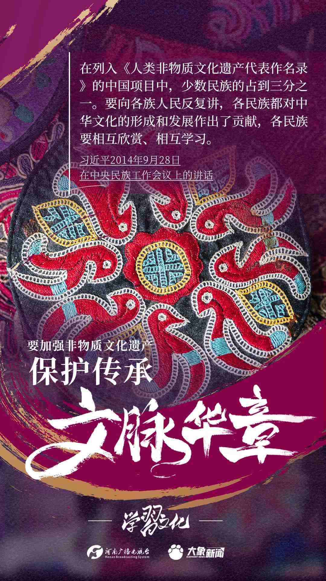 非物質(zhì)文化遺產(chǎn)是中華優(yōu)秀傳統(tǒng)文化的重要組成部分,是中華文明綿延傳承的生動見證,是我國各族人民寶貴的精神財富。習(xí)近平總書記十分關(guān)心非物質(zhì)文化遺產(chǎn)的保護傳承,多次強調(diào)“要扎實做好非物質(zhì)文化遺產(chǎn)的系統(tǒng)性保護”“培養(yǎng)好傳承人”等。大象新聞為您梳理,邀您一起學(xué)習(xí)、領(lǐng)悟、踐行。